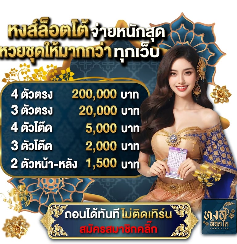 เว็บแทงหวย 24 ชม.หมดกังวลเรื่องเลขดังแทงไม่ได้ เพราะหงส์ล็อตโต้ เปิดรับแทงทุกเลข แบบไม่จำกัด แทงได้ตามใจ เลขไหนฮิตแค่ไหนก็รับหมด ถูกรางวัลเมื่อไร จ่ายครบทุกบาทเต็มจำนวน ไม่มีการหักเปอร์เซ็นต์ หรือค่าคนกลางใด ๆ มั่นใจได้ว่าเลขโปรดของคุณจะเปิดรับแน่นอน